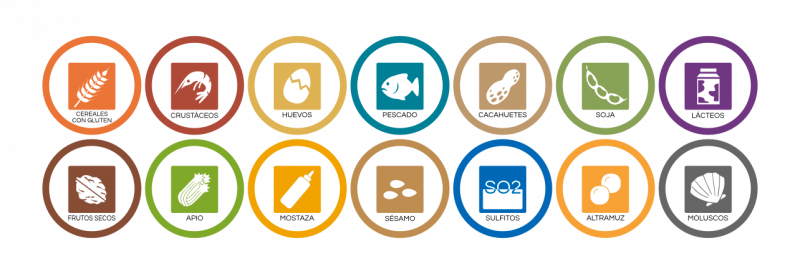 Todos los platos elaborados y ofrecidos en esta carta contienen o pueden contener uno o más alérgeno de los anunciados a continuación. Rogamos consultar al personal ante cualquier duda.